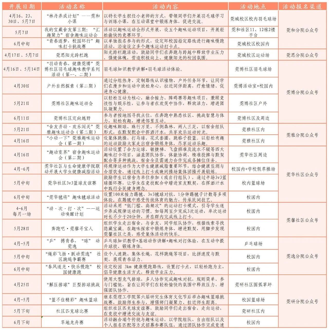 3、 活动时间集中在4-6月,每周都有机会参与