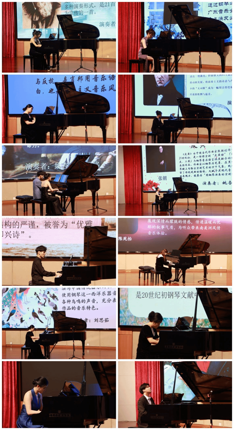 随后,王艺璇同学的《平湖秋月》、刘思茹同学的《肖邦练习曲 Op.10 No.4 》等曲目依次上演。他们凭借扎实的功底和对音乐的深刻理解,用灵动的指尖在黑白琴键上跳跃,将风格各异的曲目演绎得淋漓尽致。曲目编排巧妙融合中西元素,从西方古典的严谨架构到中国传统音乐的独特韵味,横跨时空,尽显多元文化魅力,为观众带来一场无与伦比的听觉盛宴。