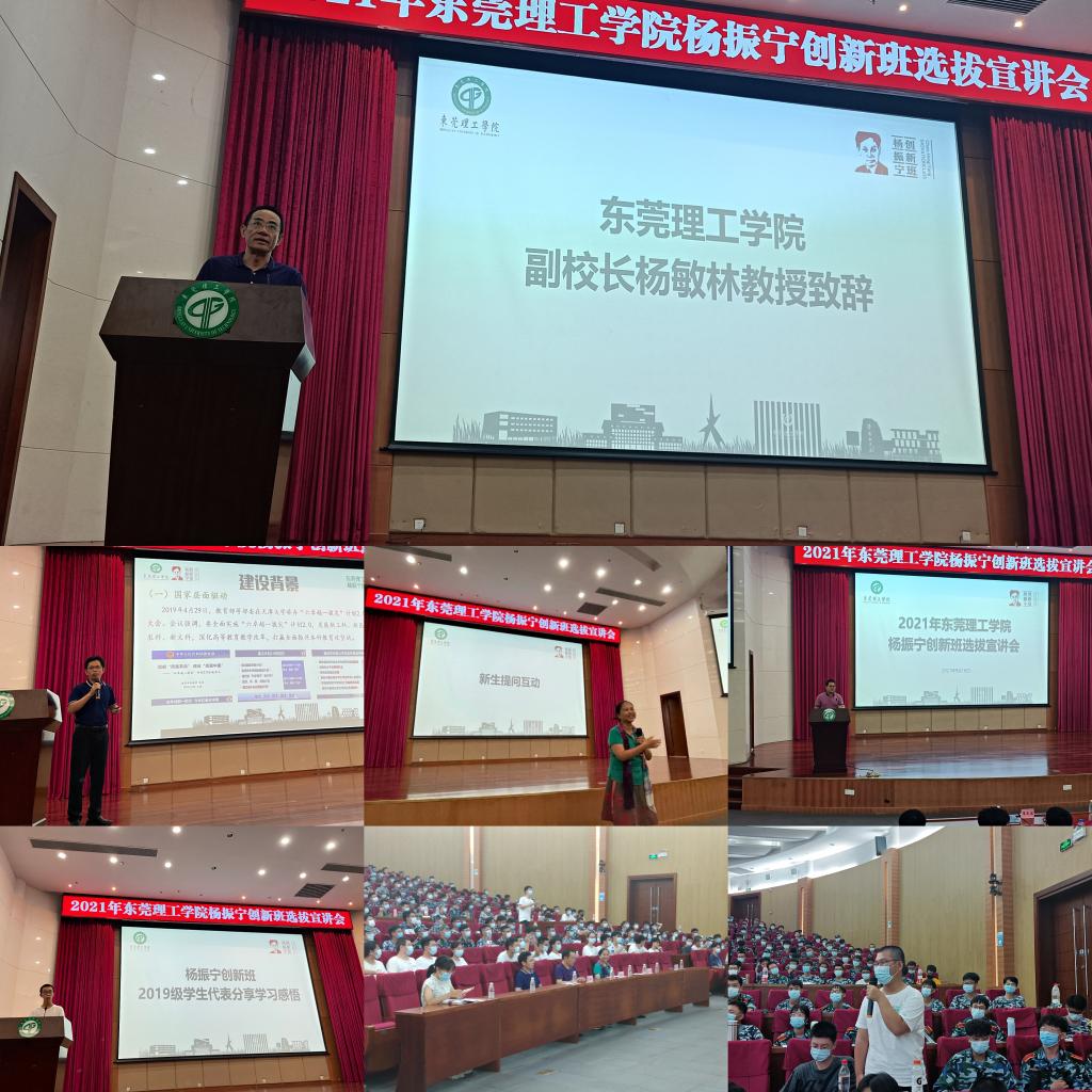 9月16日,我校2021级杨振宁创新班(以下简称为杨班)新生选拔宣讲会于松山湖校区会议中心报告厅举行。校党委委员、副校长杨敏林,教务处、知行学院相关负责人,杨班辅导员及通过初轮资格审核的457名2021级新生参加宣讲会。